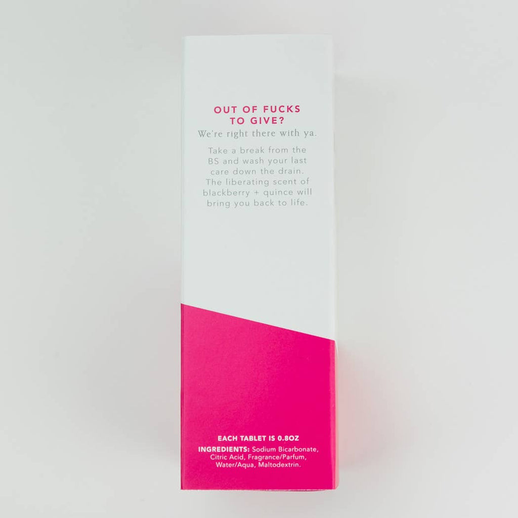 The Remaining Fucks Blackberry Quince Shower Steamers are here for the days when you’re running on empty. Infused with essential oils, these steamers fill your shower with the bold, liberating scent of blackberry and quince — the perfect way to wash the BS down the drain and come back to life. Clean, vegan, cruelty-free, and made in the USA, this cheeky set makes everyday self-care feel rebellious in the best way. Packaged in a bold, gift-ready box, they’re a customer favorite for wellness shops, gift retailers, and modern boutiques looking for under $30 self-care with personality.