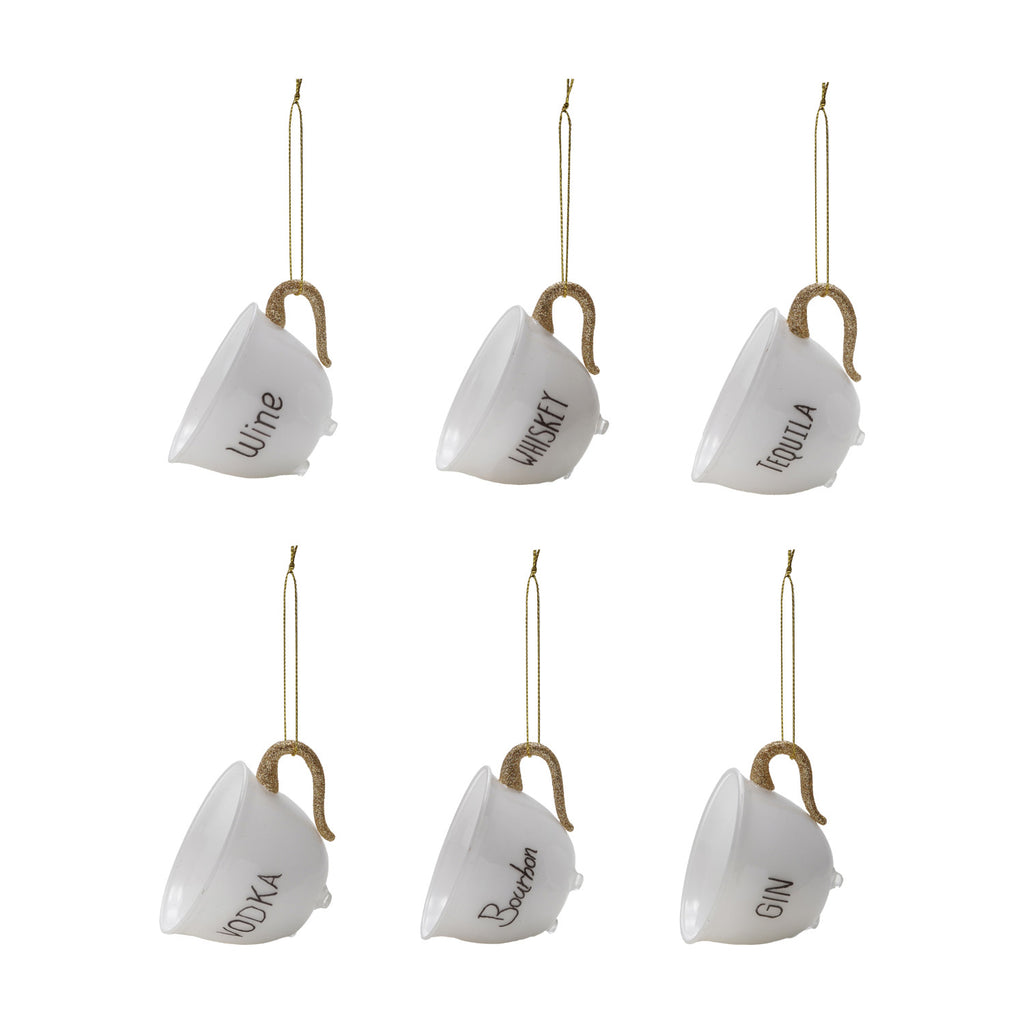 3-3/4"L Glass Teacup Ornament w/ Alcohol Name, White, 6 Styles