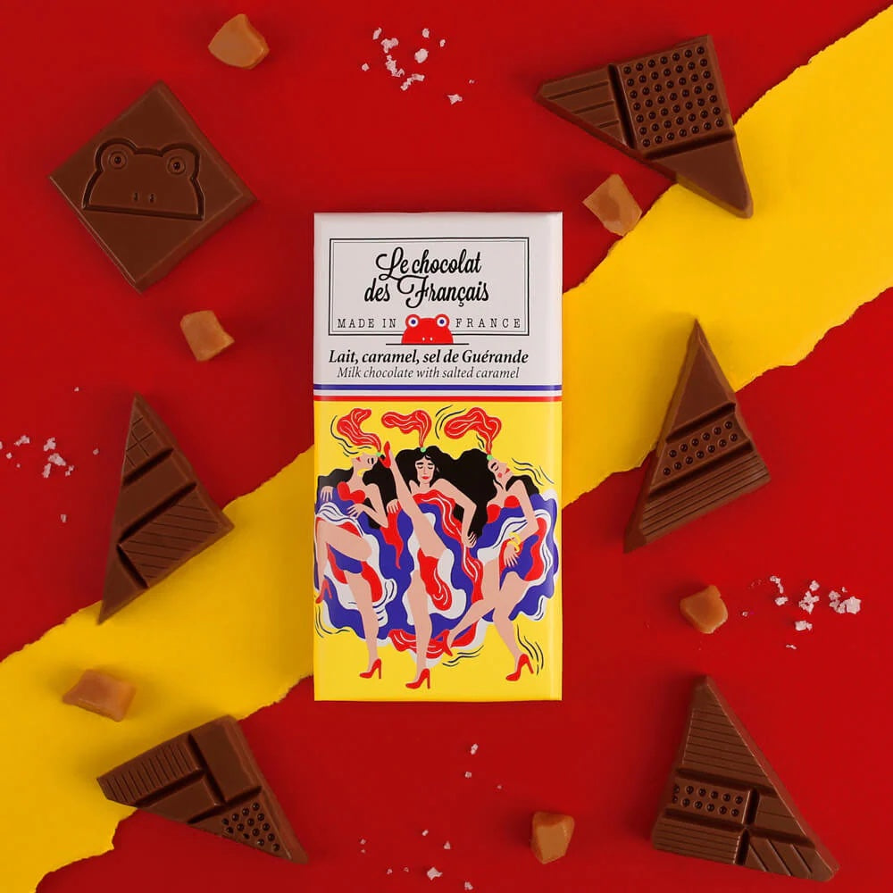 Discover our recipe with milk chocolate, caramel and salt by tasting the "Dancers" mini bar, illustrated by Piment Martin