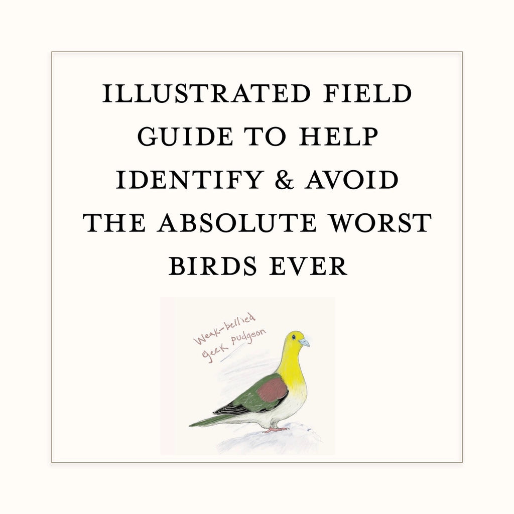 Professional birding amateur and national bestselling author Matt Kracht has had it with these goddamn birds. His new book is a warning, a field guide to help you identify and stay away from the absolute worst birds ever to plague planet Earth. Featuring an all-new scientific scale devised by the author that proves how awful birds really are.