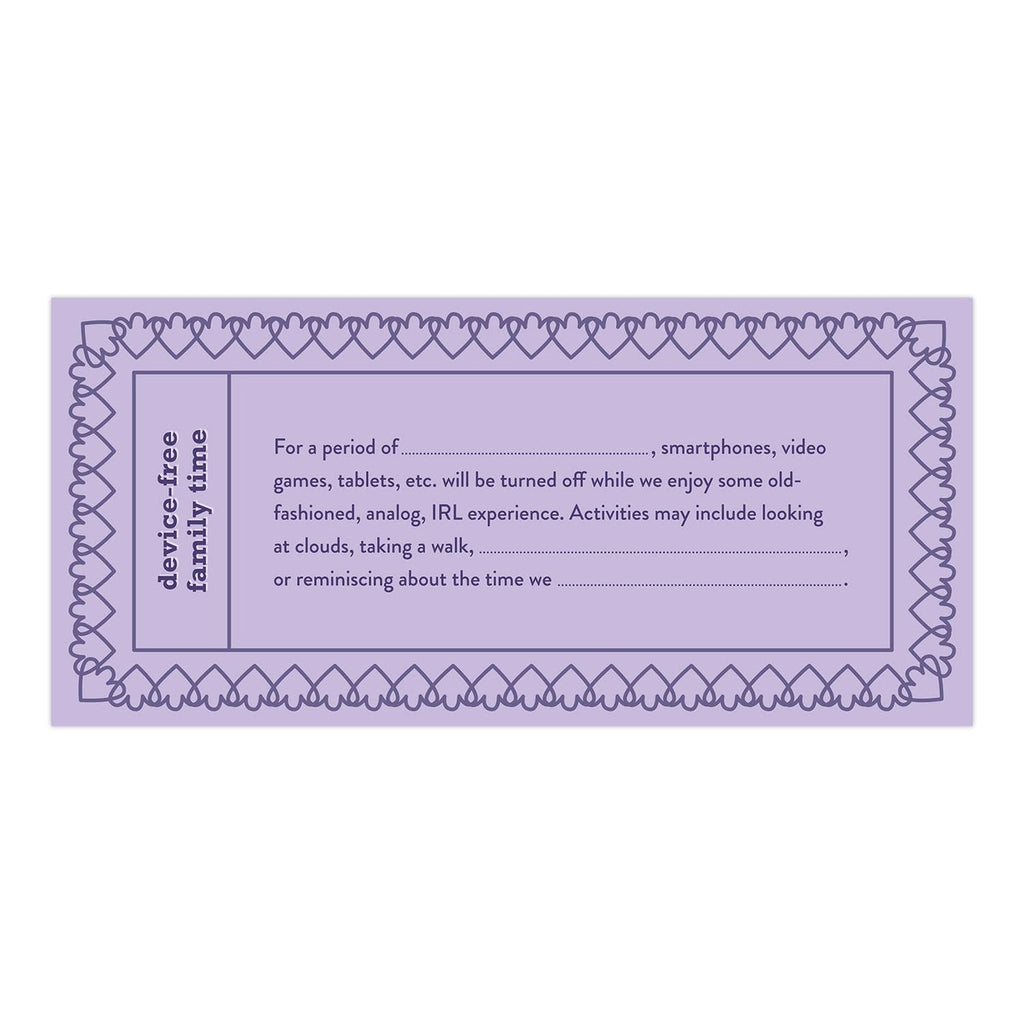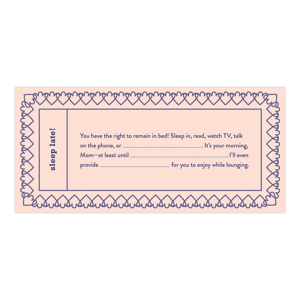 Let Mom know she's loved, appreciated–and not just a robot who used to drive you around and make you dinner–with this shiny booklet of customizable, feel-good coupons. Simply fill out all 15 vouchers and hand 'em over to be cashed in anytime for props, pampering, favors, fun, and a well-earned break.