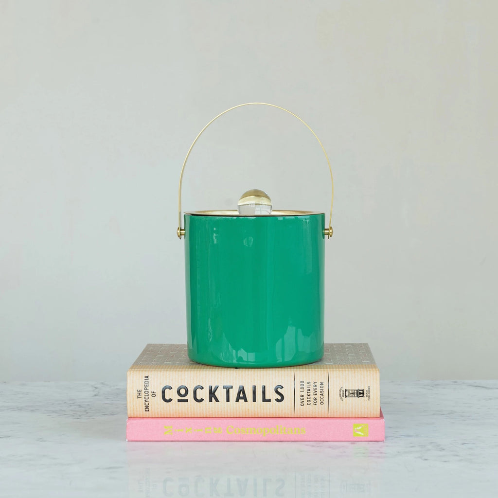 Green Enameled Stainless Steel Ice Bucket w/ Lid