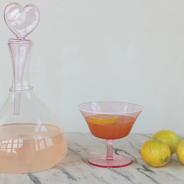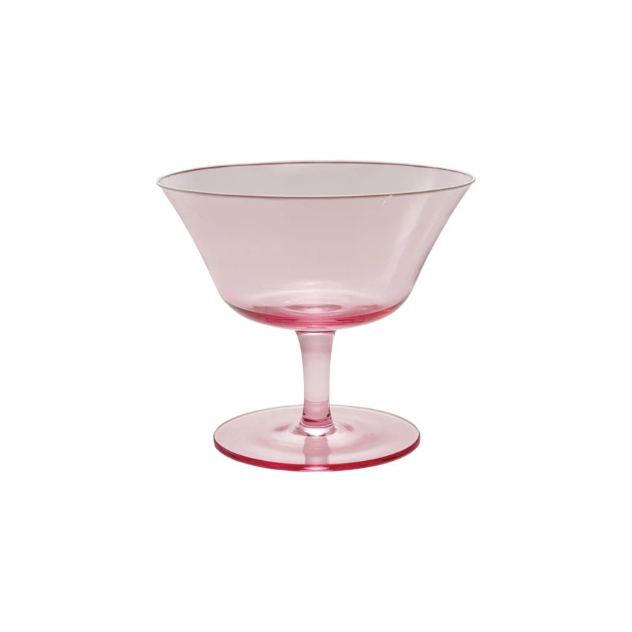 4" Round x 3"H 8 oz. Stemmed Coupe Glass w/ White Rim, Pink